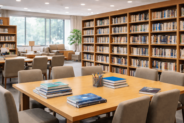 Hygienic and spacious cafeteria serving nutritious meals in a clean and comfortable environment.